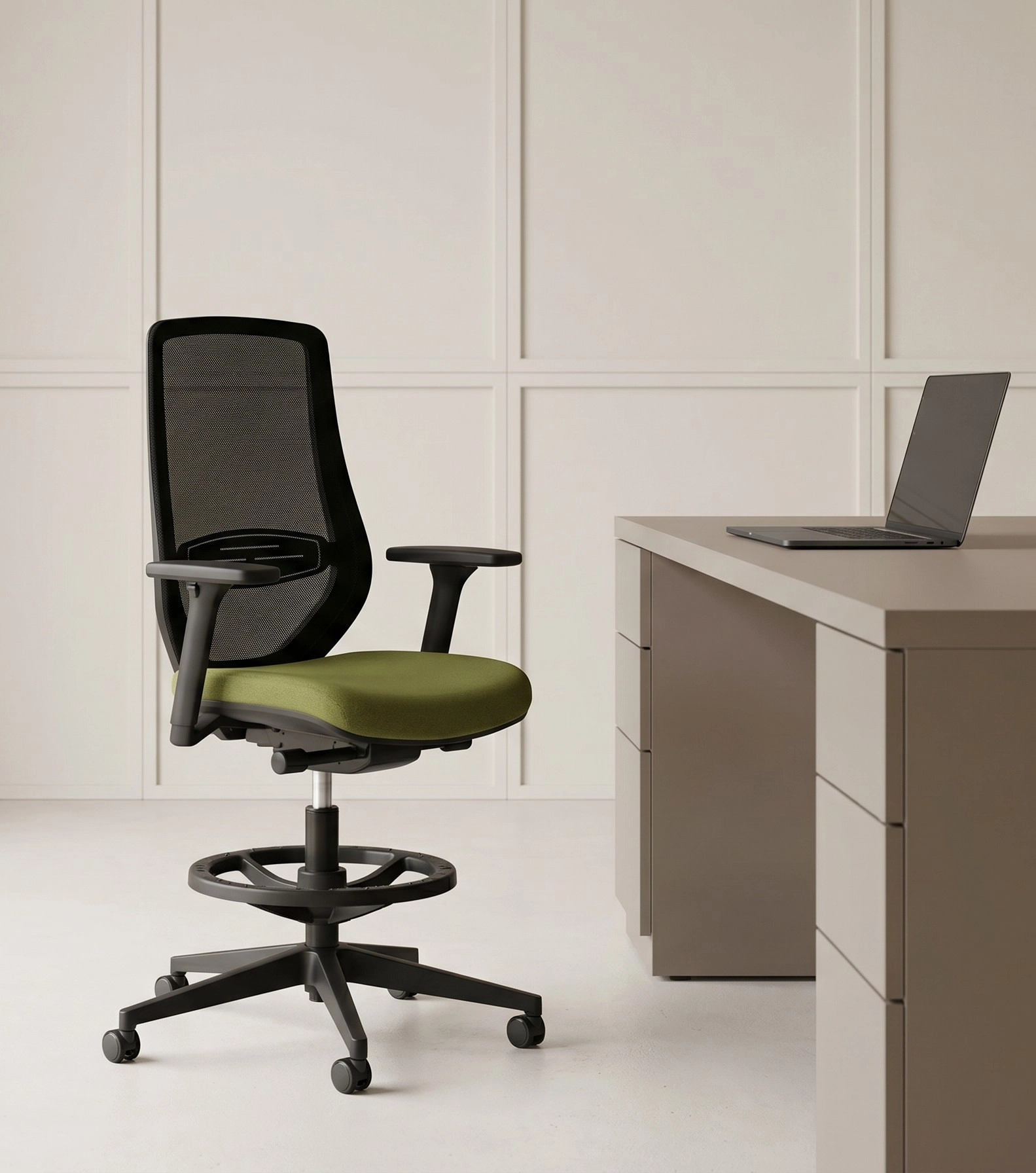 Wyposażone jest w podparcie lędźwiowe regulowane w wysokości oraz głębokości lub tylko w wysokości.