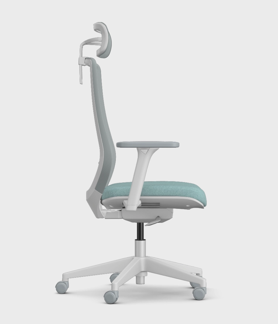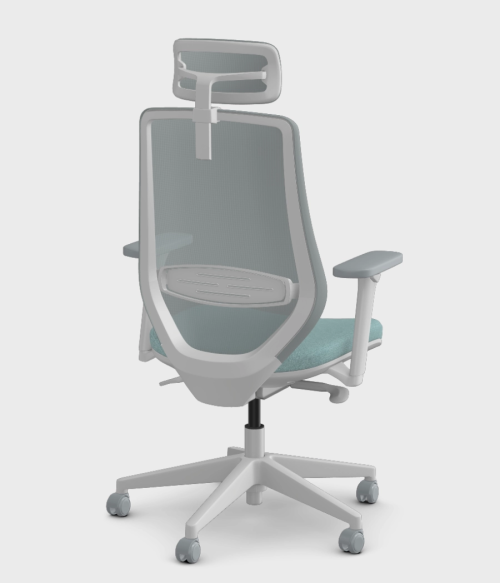 Krzesło posiada zagłówek, który może być zarówno w wersji siatkowej jak i tapicerowanej tkaniną. Zagłówek jest regulowany w wysokości a dodatkowo dzięki specjalnemu systemowi obrotowemu jego położenie dostosowuje się automatycznie do ułożenia głowy.
