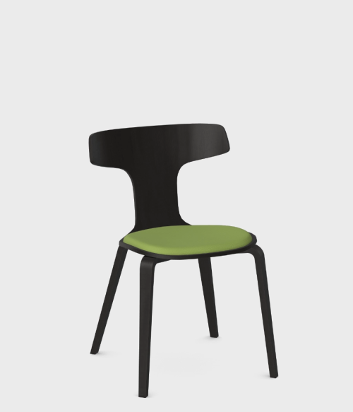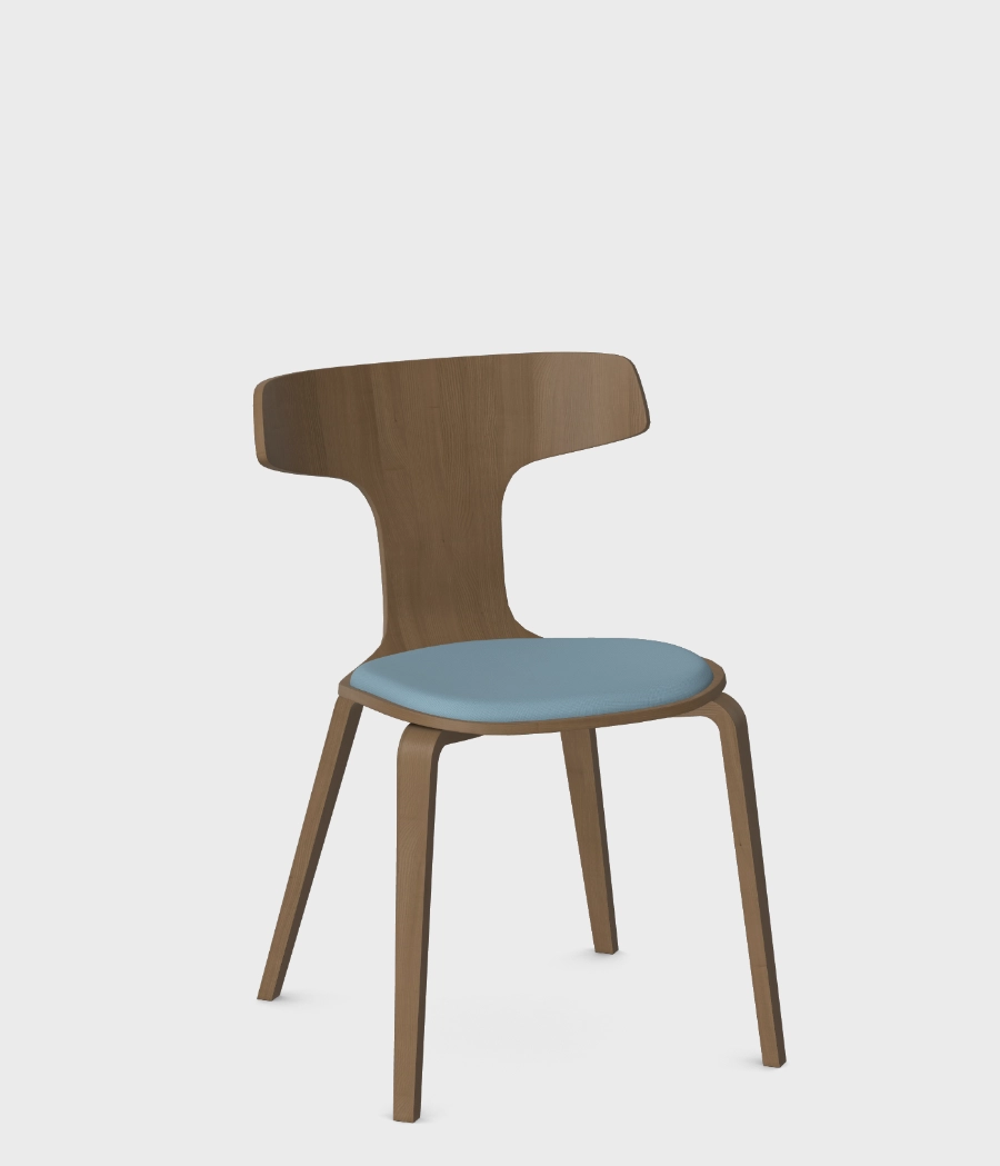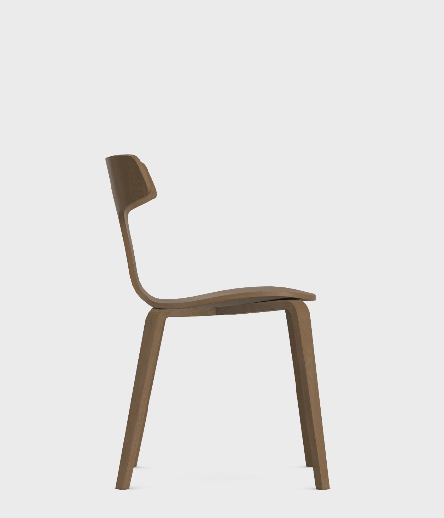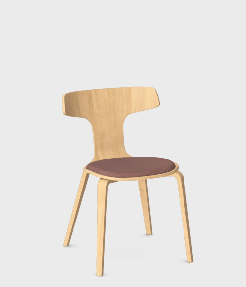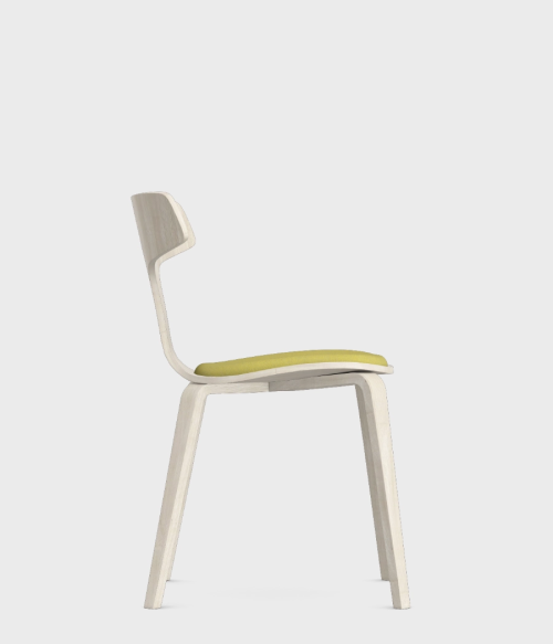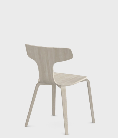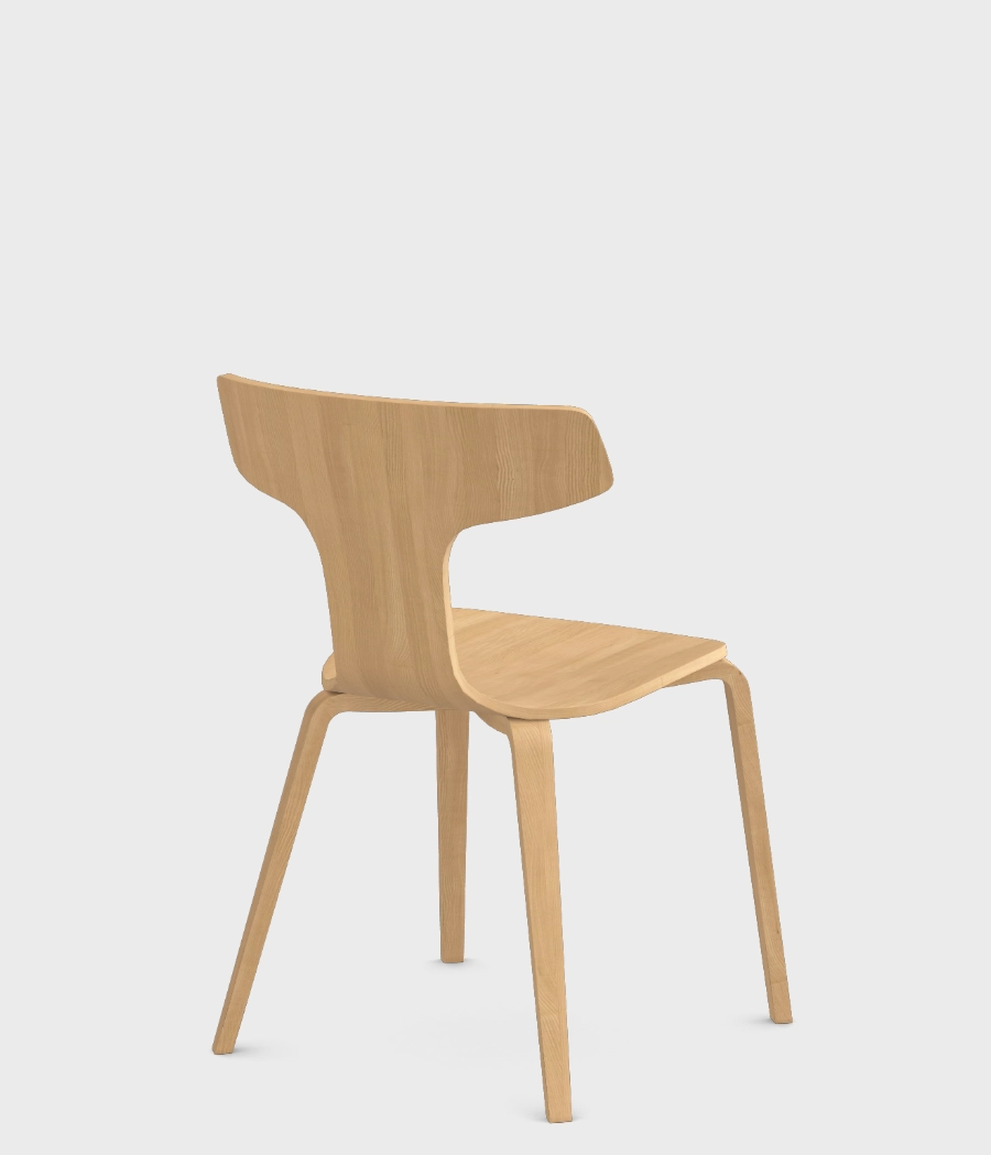 Całe krzesło jest wykonane z giętej sklejki. Wierzchnia warstwa sklejki to fornir jesionowy w 4 kolorach - dębu, bielonego dębu, orzecha oraz czarnym.