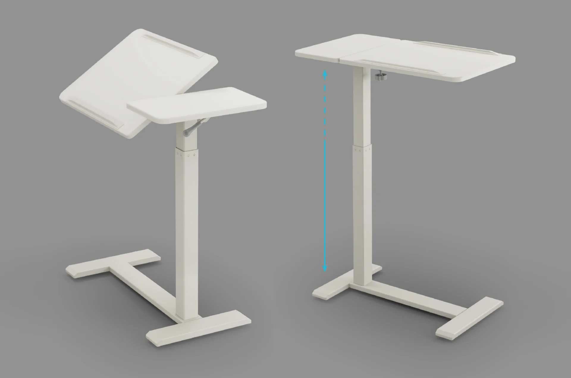MATI jest regulowany w wysokości za pomocą dźwigni uruchamiającej siłownik gazowy znajdujący się w stelażu. Regulacja jest bezstopniowa, cicha i nie wymaga użycia siły. Zakres wysokości pozwala na pracę zarówno na siedząco jak i na stojąco. Stolik pozostaje bardzo stabilny nawet przy największym wysuwie.