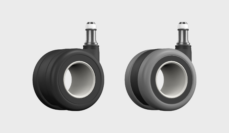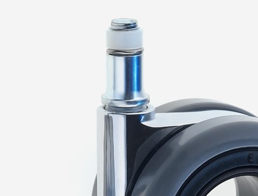 Kółka SILENT posiadają dodatkowy pierścień na trzpieniu wciskanym w podstawę krzesła.