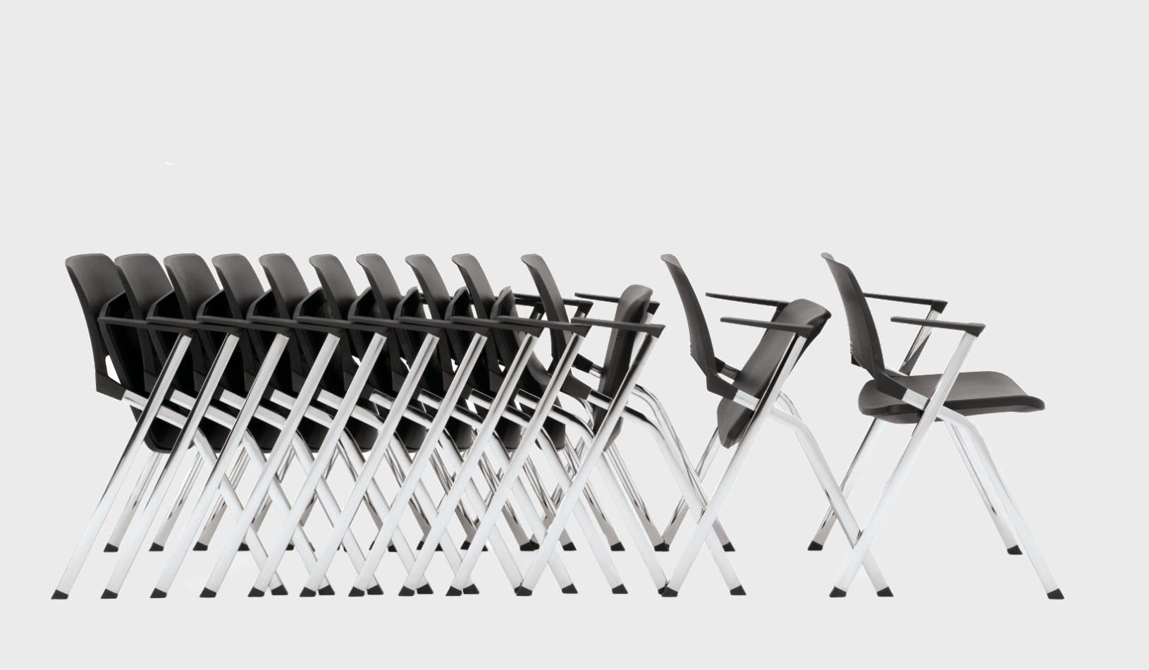 Składane siedzisko jest idealnym rozwiązaniem do sal konferencyjnych gdy krzesła muszą być często składane lub przewożone. Zwykle krzesła można sztaplować w pionie co wiąże się jednak z konieczność ich przenoszenia.
